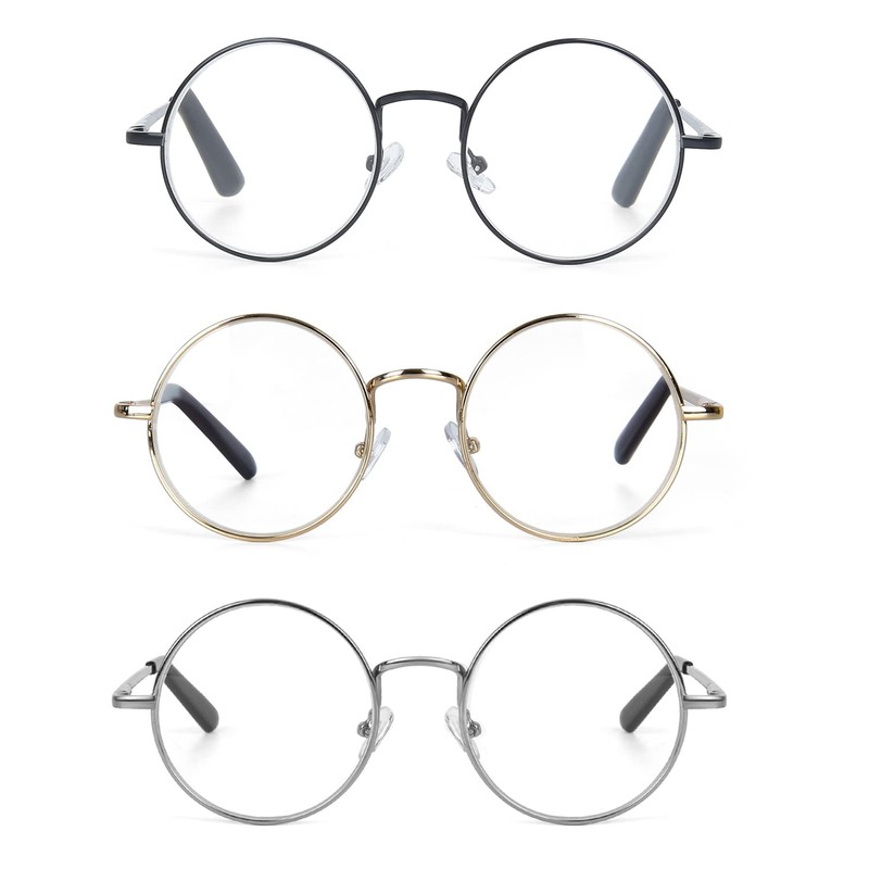 - EYE ZOOM 3 pack classic round metal frame filter blue light readers with spring-hinged temples. Great for home, office, or bedside use. Keep a pair at your desk, in your bag, and in your favorite reading spots. They are also perfect gifts to your parents and the elderly.