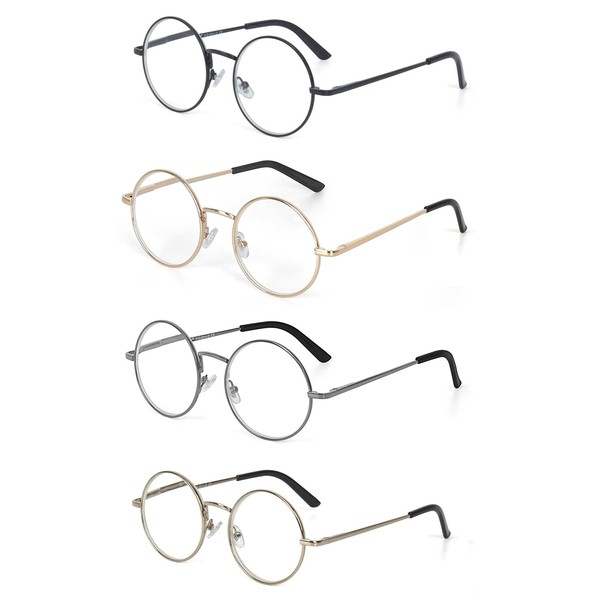 EYE ZOOM 4 Pack Metal Frame Round Reading Glasses with Spring Hinge (Multi Color, +1.00 Strength)