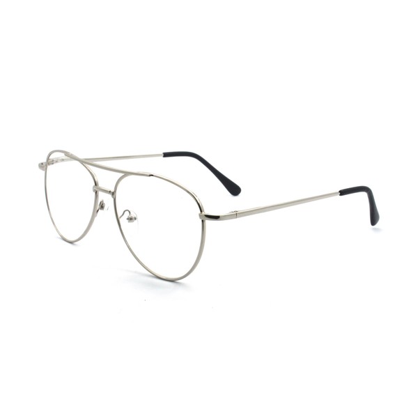 EYE ZOOM Aviator Style Metal Frame Reading Glasses with Spring Hinge, Silver, +2.50