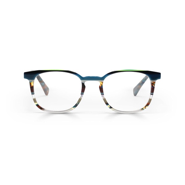 eyebobs Boardroom Unisex Premium Reading Glasses, Multi Stripes Front with Teal Tortoise Temples, 3.00 Magnification