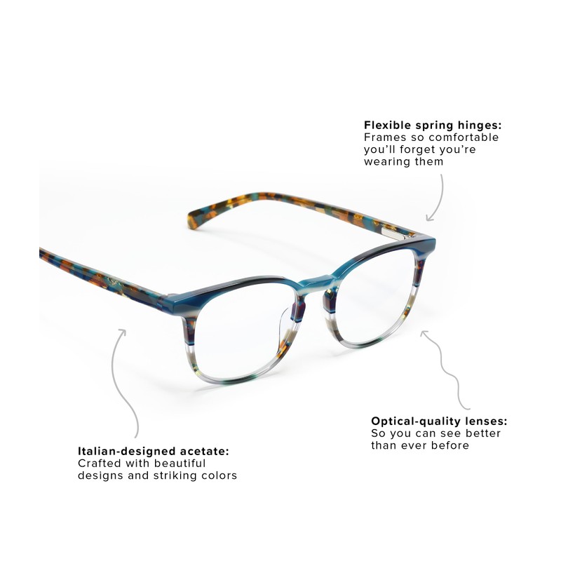 | Color: | Multi Stripes Front With Teal Tortoise Temples |