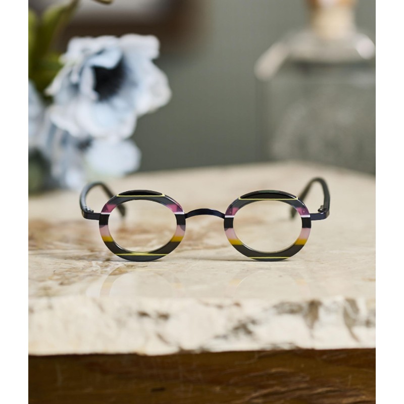 eyebobs - Pinhead | Premium Reading Glasses for Men and Women | Round Frame for Narrow Faces | Purple Stripe, 1.00