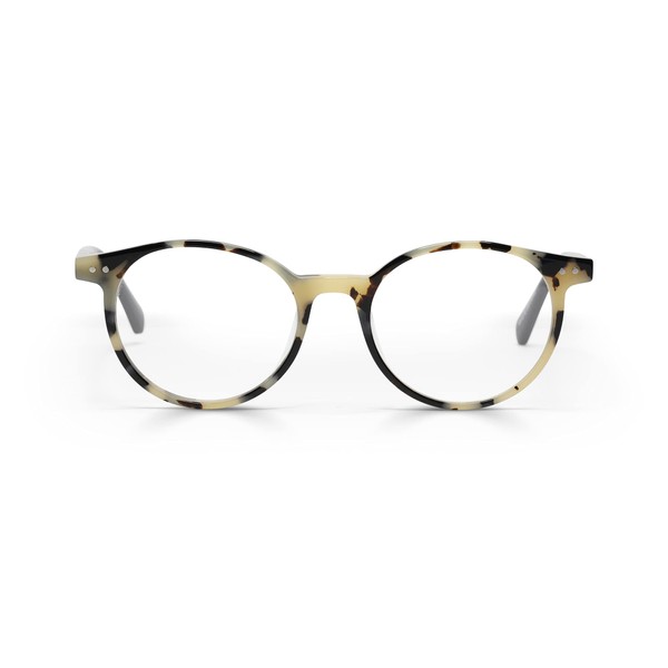 eyebobs Premium Reading Glasses for Men and Women | Case Closed - Classic Round Shaped Frame for Average Faces | Available in 0.0x - 4.0x, Black & White Tortoise, 1.00