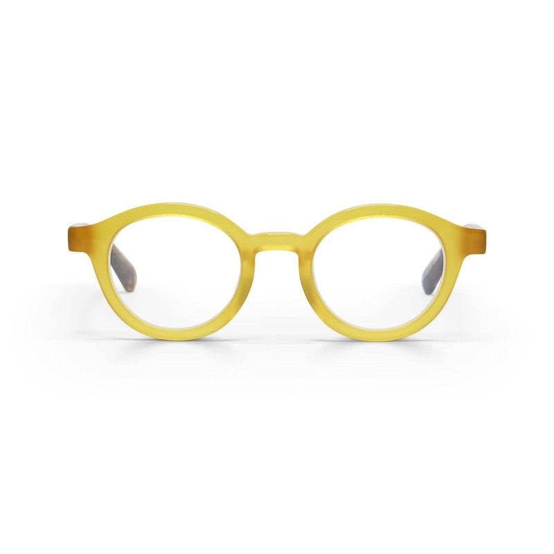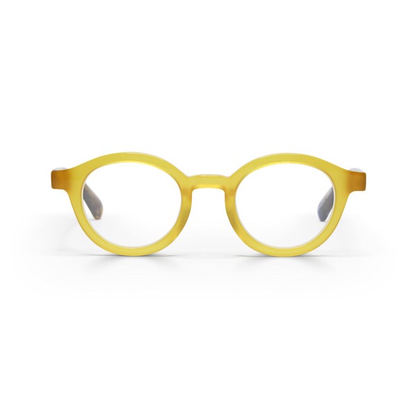eyebobs TV Party Premium Unisex Reading Glasses, Yellow Front with Blue and Brown Chop Temples, 1.25 Strength