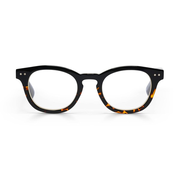 eyebobs Waylaid Wide Premium Unisex Reading Glasses, Black & Demi Front and T...