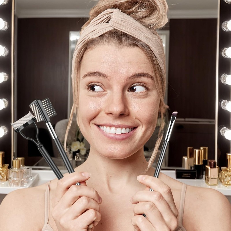 • 【Dual-Ended Eyebrow Brush】This professional eyebrow brush features a dual-head design. One end has an angled brush perfect for shaping and defining brows with precision, while the other end includes a spoolie for blending, grooming, and smoothing both brows and lashes.
