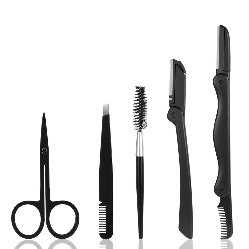 - 【5-in-1 Professional Eyebrow Grooming Set】The eyebrow shaping kit includes: 1 folding eyebrow trimmer with comb, 1 eyebrow trimmer, 1 precision eyebrow trimming scissors, 1 oblique tweezers, and 1 eyebrow brush.