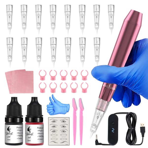 - 🎄PACKAGE INCLUDES: Microblading Kit inclueds 1 * eyebrow tattoo machine, 1 * power supply, 30Pcs cartridges needles (1RL*10, 3RL*5, 5RL*5, 3F*5, 5F*5), 5 * eyebrow razor, 7 * eyebrow tattoo ink set, 1 * tattoo aftercare butterm, etc; Practice Skin For Eyebrow, Marking Symmetrical Eyebrows, Ink ring cup and eyebrow cling film etc for Tattoo Artists and Beginners