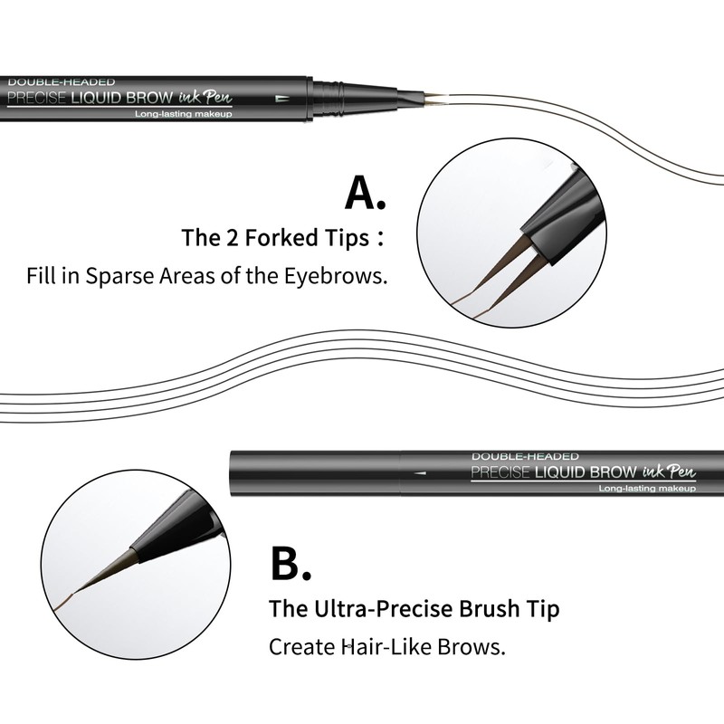 • Authentic and Natural: This eyebrow pen features a double-ended design, which is extremely convenient. The ultra-precise brush tip can create hair-like brows. The 2 forked tips can fill in sparse areas of the eyebrows. Equipped with an eyebrow brush, it can easily groom the eyebrow shape and create natural-looking eyebrows.