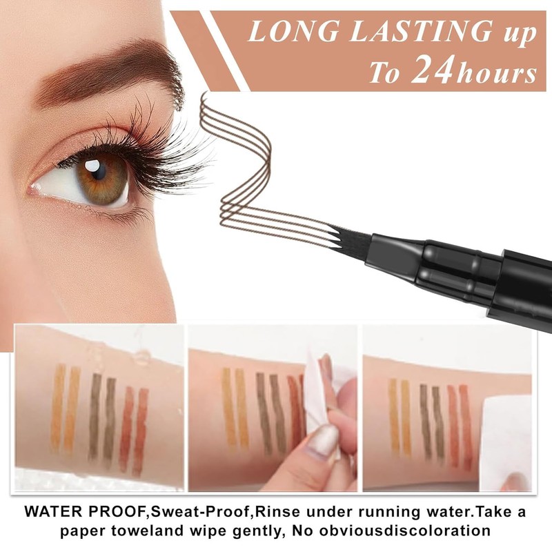 - 【Waterproof Eyebrow Pen】: Our eyebrow contouring pen is designed to be waterproof, ensuring that your eyebrows stay defined and in place all day. No need to worry about fading, smudging, or running, even during activities like sweating, rain, or water sports