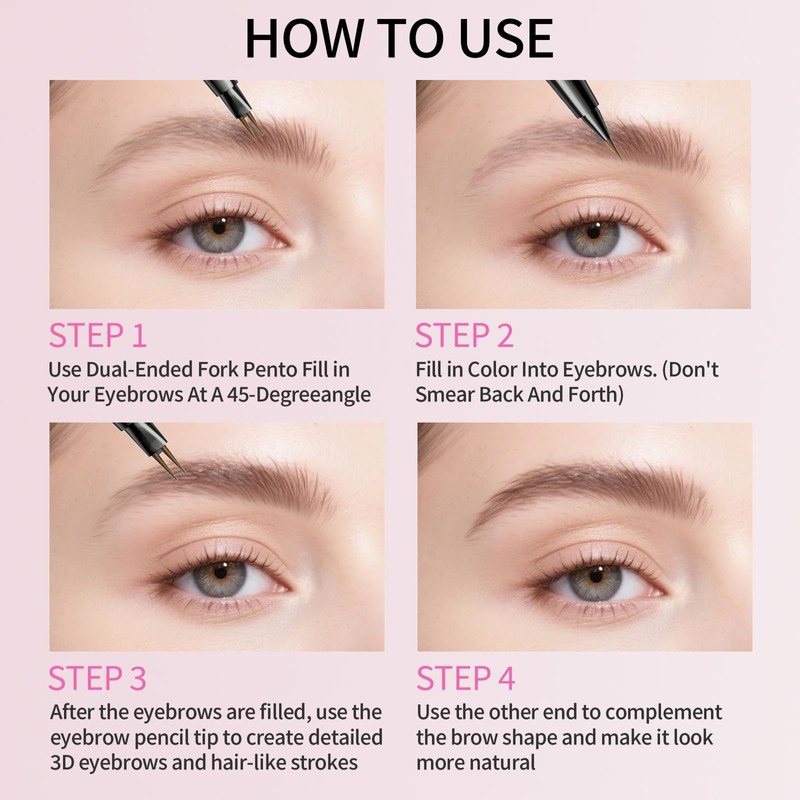 - Create 3D Natural Eyebrows: Featuring a precision tip for fine, hair-like strokes and a dual-ended tip to fill in sparse areas, you can use it to fill in sparse brows or emphasize the shape of your brows to resemble 3D natural hair.