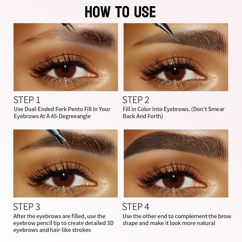 - Create 3D Natural Eyebrows: Featuring a precision tip for fine, hair-like strokes and a dual-ended tip to fill in sparse areas, you can use it to fill in sparse brows or emphasize the shape of your brows to resemble 3D natural hair.
