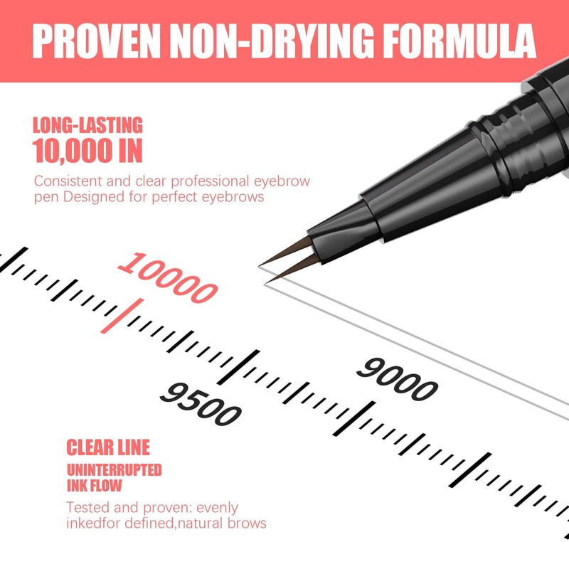 - 【PROVEN NON-DRYING FORMULA】Our Liquid eye brow pencil is made with water-resistant non-drying formula. Uninterrupted ink flow draw clear line, evenly inkedfor defined,natural brows. Easy to remove with makeup remover or cleansing oil.