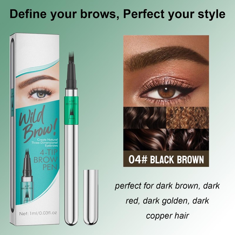 Achieve the perfect brows with our innovative 4-tip brow pen. This eyebrow pen is designed to create natural, 3D eyebrows with ease. The unique 4-tip applicator allows for precise, hair-like strokes and efficient filling of sparse areas, ensuring a flawless look that lasts all day. Elevate your beauty routine with the beauty brow and redefine your eyebrows with confidence.