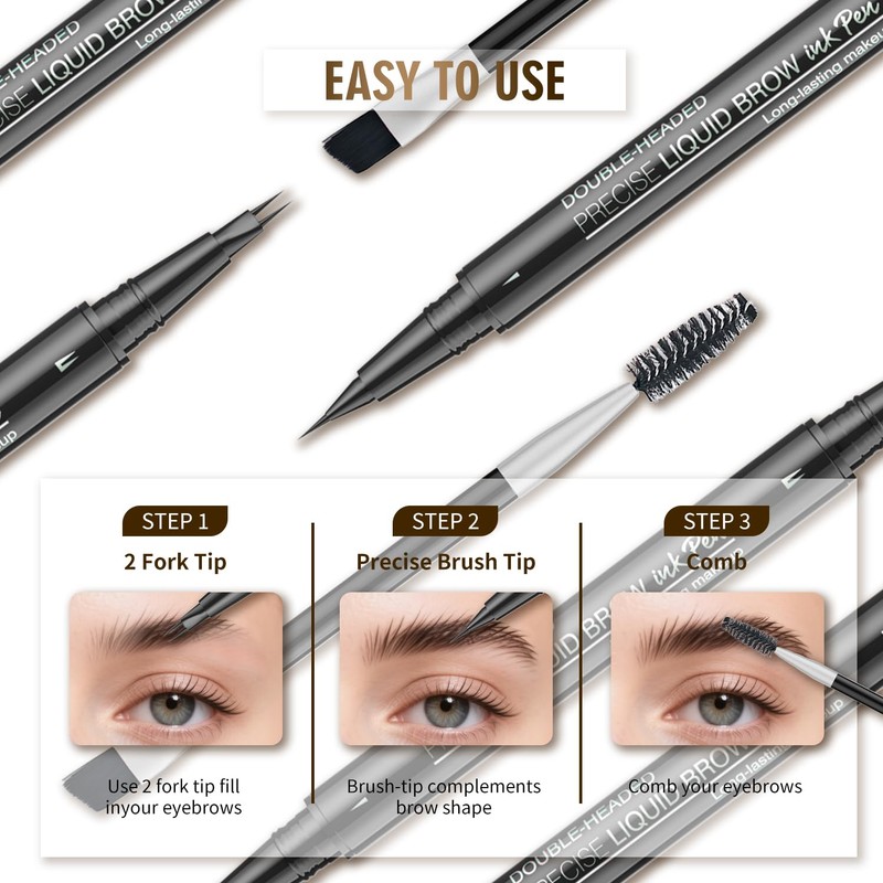 Shades For All Skin Tones: Each color blends well with your skin tone and makeup, showcasing your unique charm; IMPORTANT-GENTLY SHAKE the brow pen up and down before use; When NOT in use, ALWAYS keep the cap TIGHT; CLEAN YOUR BROW AREA BEFORE USE