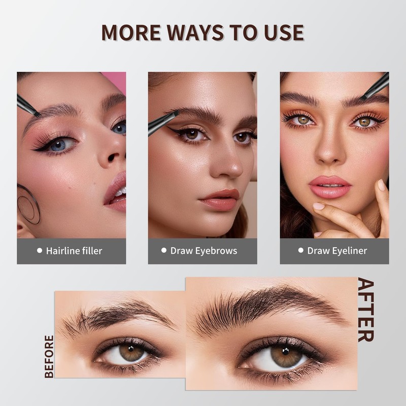 • 【Easy to use and remove】: No special skills or make-up artists required. Beginners and professionals love our eyebrow pencil. Our eyebrow pencil is equipped with four tips that make it easy to draw and fill in natural eyebrows. The eyebrow gel tint can also be easily removed with makeup remover or oil cleaner.