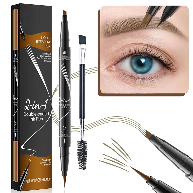 - [2-in-1 Dual-Ended Eyebrow Pencil] The special design with two ends allows you to precisely draw hairy brows with one end to draw hair-like strokes, the other end has a 4-prong micro fork tip brow applicator to fill gaps and mix colour into the brows. Comes with a professional brush with two ends. Eyebrow pencil super compact to fit in your make-up bag and handbag.