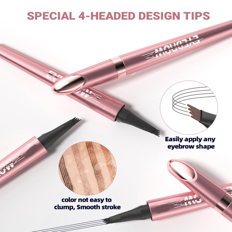 • Waterproof 3D eyebrow pencil with 4 fork tips: the four-pointed design creates 4 micro-fine, hair-like lines in a single stroke and fills your hairless areas in a few strokes. This pointed applicator creates the illusion of real, naturally grown eyebrow hair.