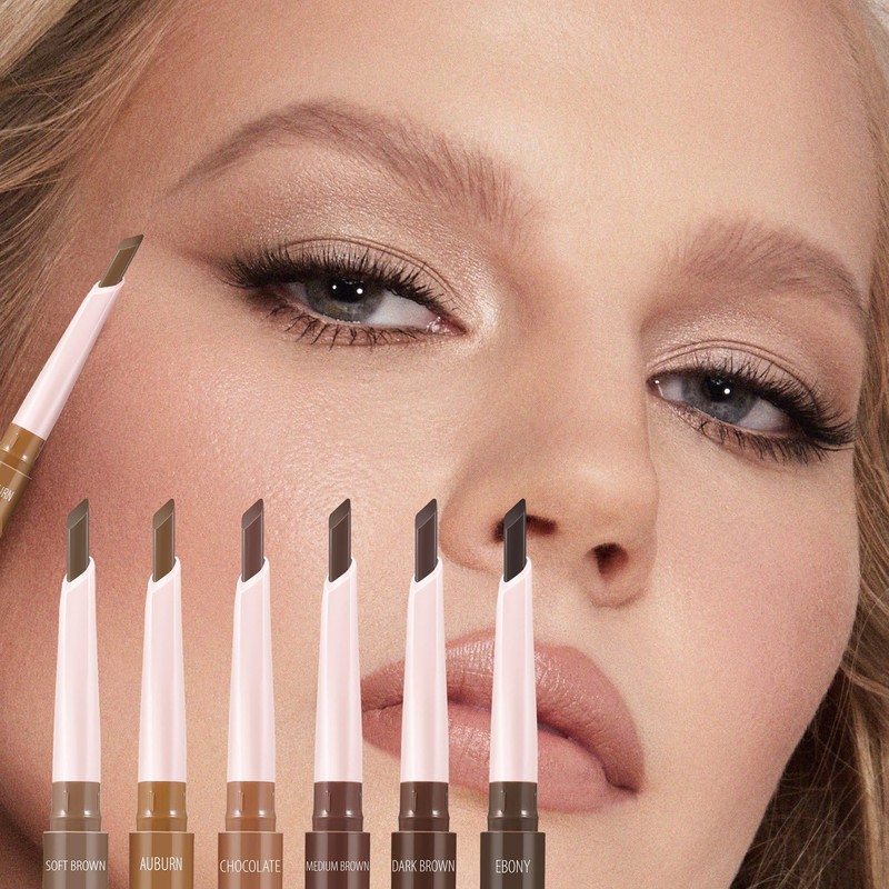 - 🌿[Twist-Up Convenience] Featuring a convenient twist-up mechanism, this retractable brow pencil eliminates messy sharpening. The fine triangular tip allows for precise application to draw individual brow hairs or fill sparse areas with natural-looking results.