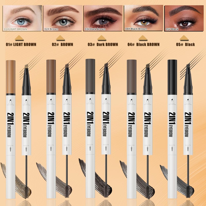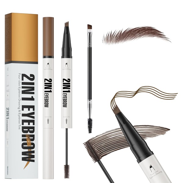 • 2025 Upgraded Eyebrow Pencil and Eyebrow Gel: Unlike other 2-IN-1 eyebrow pen and eyebrow gel clear don't provide same color brow gel with eyebrow pencil, Our brow pencil and gel are same color. This innovation is the perfect solution to the problem of uneven colouring and blending of the drawn eyebrows with your own. From Lift to Bold to Perfect Shape, our microblading eyebrow pen with 4 precision-fork-tip to create natural hair-like strokes, brow gel for Lift, Volume, Coloring and holds brows in place all day without flaking or smudging. Say goodbye to sparse, thin and uneven looking brows for fuller brows that last