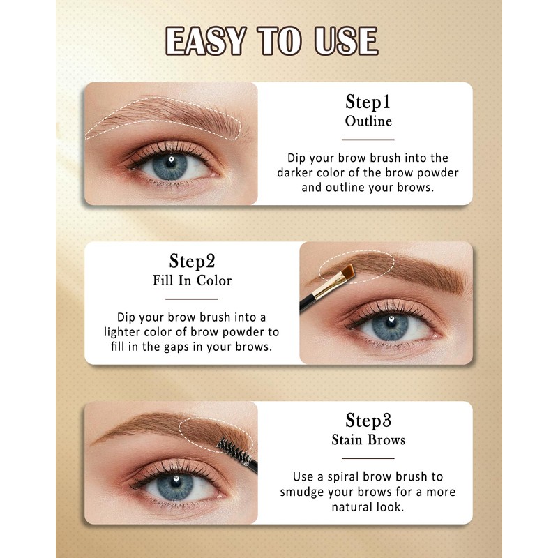 - Easy To Apply - This eyebrow kit is perfect for novice beginners, even newbies can draw natural looking eyebrows like a professional makeup artist. The powder is fine and easy to apply. Features a lightweight formula for natural-looking color and smooth application. Use the eyebrow brush to outline and fill in your brows, fit your brows without clumping and create naturally thicker brows. Thicker, more defined brows in seconds.