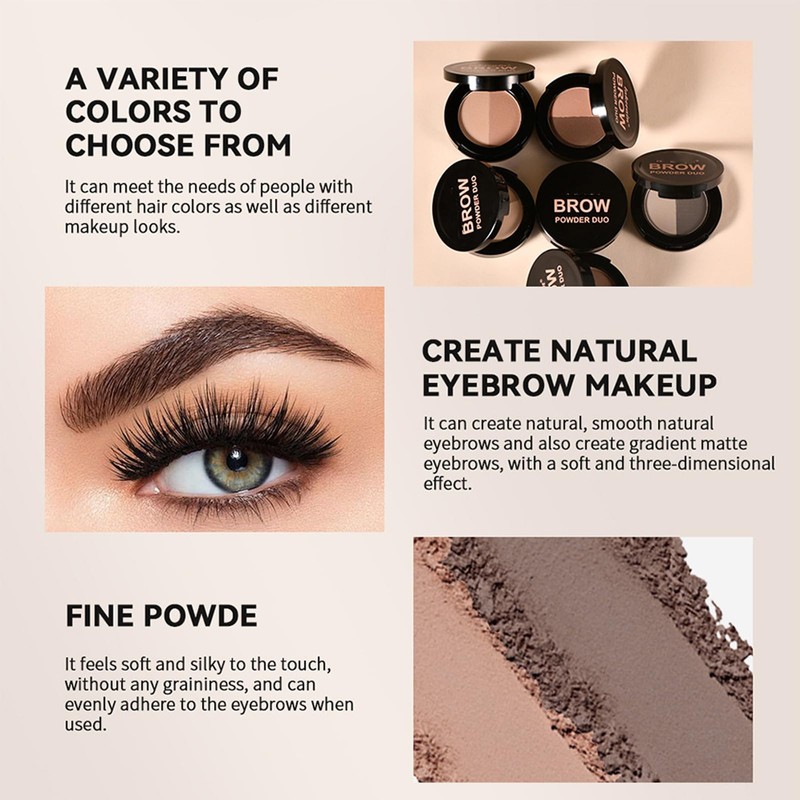 1) The 2-color Eyebrow Powder can mix a variety of different colors, easier to match your skin tone and hair color, to help you create a more natural makeup look, gives natural look and lasts all day long.