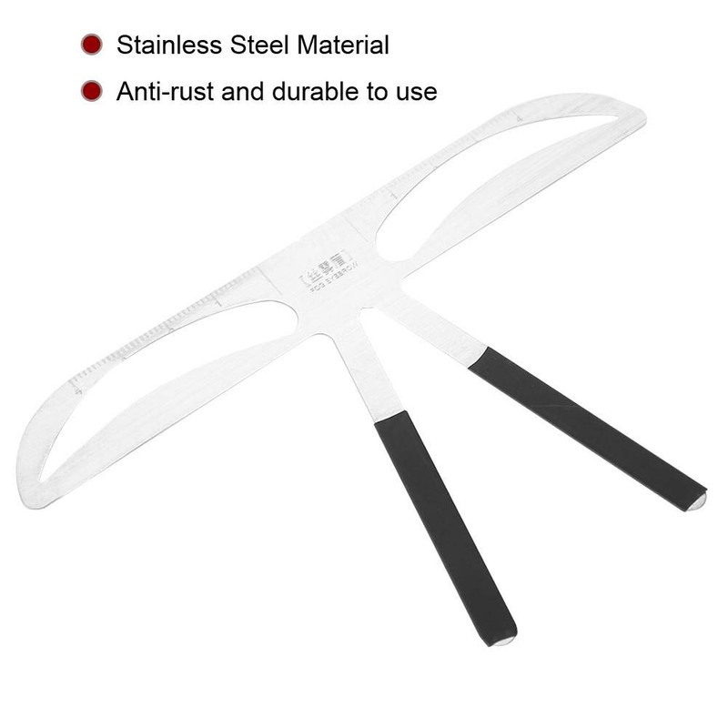 Made of stainless steel material, this ruler is anti-rust and durable to use. Three points positioning design can help you solve the problem of left and right eyebrows asymmetry. Assist to accurately position in eyebrow shaping, makes it easy to draw eyebrows. Accurate scale mark on the ruler. Easily measure various kinds of eyebrows and paint the most suitable eyebrow shape. 2 optional rules for your choice, Falling tail eyebrow and Silk fog eyebrow.