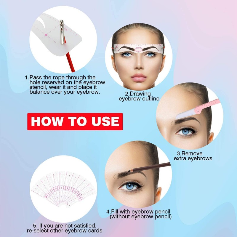 - Fashionable Eyebrow Creation: Very easy to use eyebrow template. 12 different eyebrow shapes including 12 popular fashion styles today. You can draw confident eyebrows every day. Eyebrows revolutionize the look of your face. You can choose the suitable eyebrow shape according to different makeup and also can be used as eyebrow trimming tool