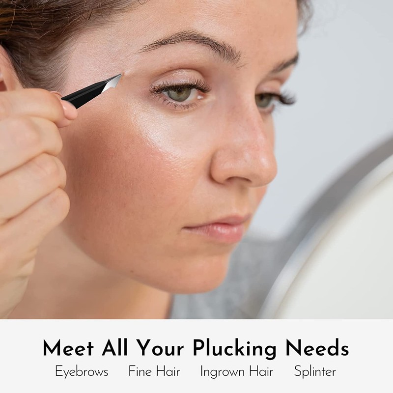 The tips of these eyebrow precision tweezers are sharp and perfectly aligned, pull splinters and from unruly eyebrow hair, pluck chin hair, remove nose hair and all unwanted body hair, fine hair to avoid pain when plucking.