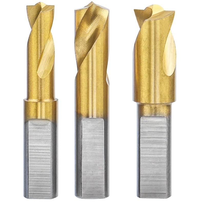 - Each spotting weld drill bit has permanently etched size markings for quick identification.