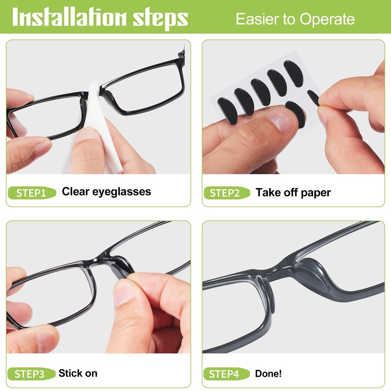 For the best adhesion effect, please clean the use area of your glasses and let them dry thoroughly before using the nose pads.