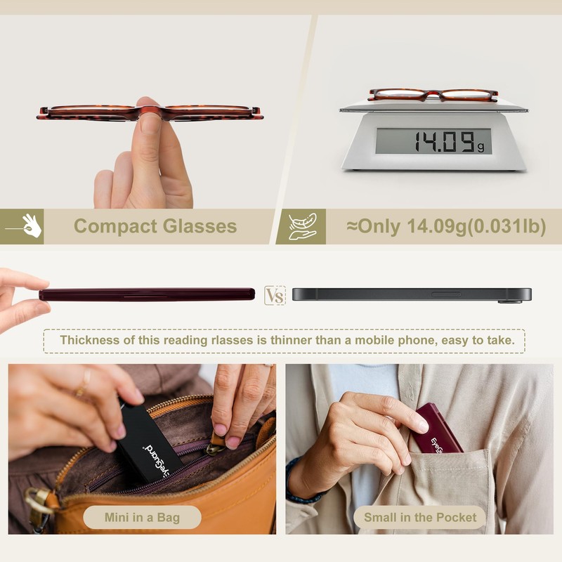 - [ Compact & Thin Lightweight ] - These small reading glasses feature a slim, featherlight design that fits effortlessly in pockets, purses, or cases—ideal for travel and everyday carry. Perfect for both men and women.
