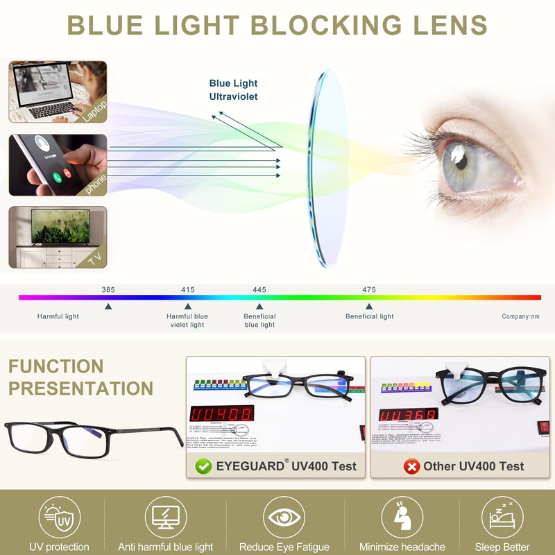 - [ EYEGUARD Blue Light Blocking Lenses ] - Advanced lenses block harmful blue light from digital screens (phones, computers, tablets), reducing eye strain and fatigue during prolonged use.