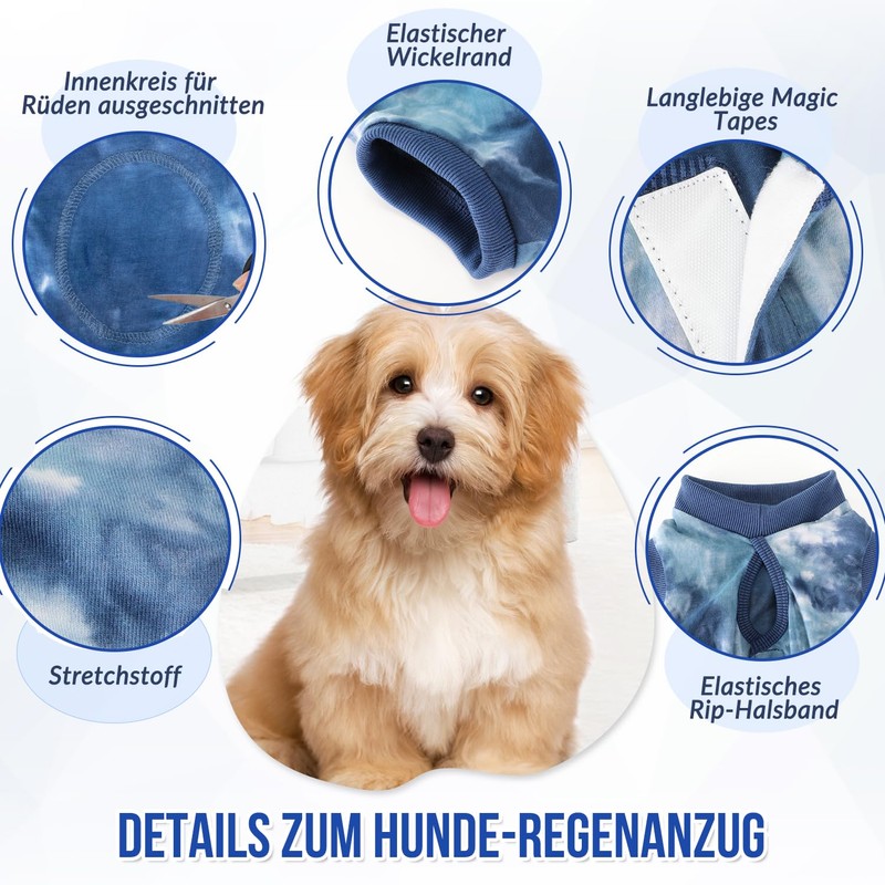 Eyein Dog Bodysuit After Op, Breathable and Comfortable Onesie for Dogs with Adjustable Velcro Fastening, Wound Protection Suits for Dogs to Prevent Licking - E-Collar Alternative (Blue, XXL)