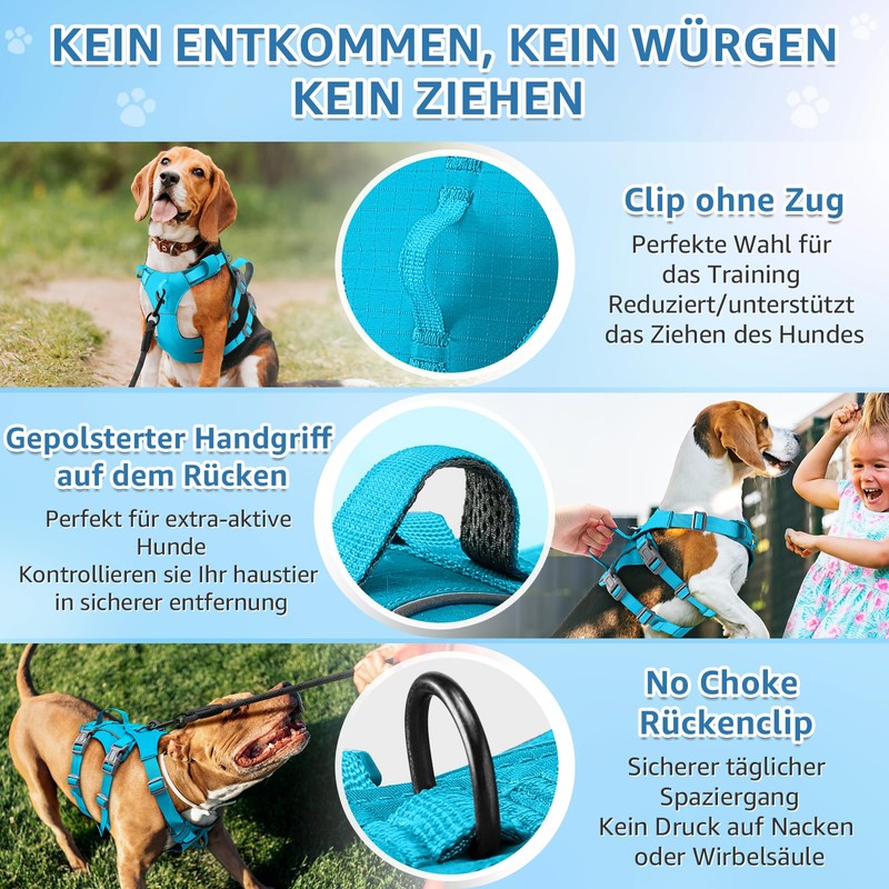 2) No escape, no choking, no pulling --- escape proof dog harness.
