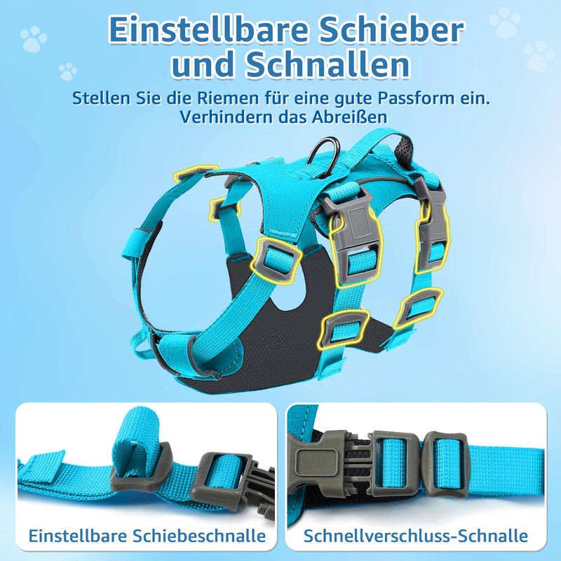 - Adjustable for easy carrying: the easy walk dog harness has 6 adjustable buckles so you can better adjust the size of your dog. The buckles can be quickly opened and adjusted, which makes putting on and taking off the harness easier and faster for your dog.