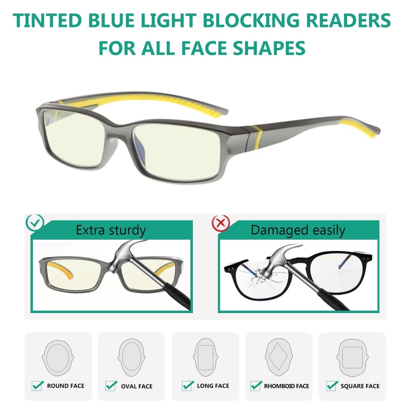 - Blue Light Reading Glasses ☛ blue light blocker and UV400 Lenses, alleviates visual fatigue and discomfort from browsing mobile phones, tablets, gaming and working under fluorescent lights with UVA and UVB protection and glare reduction.