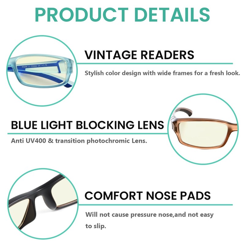 - Durable & Lightweight Computer Readers ☛ ultra-light and flexible resin frame material for durability and comfortable long-term wearing. Casual frame design keeps you looking cute and stylish while working or playing video games.