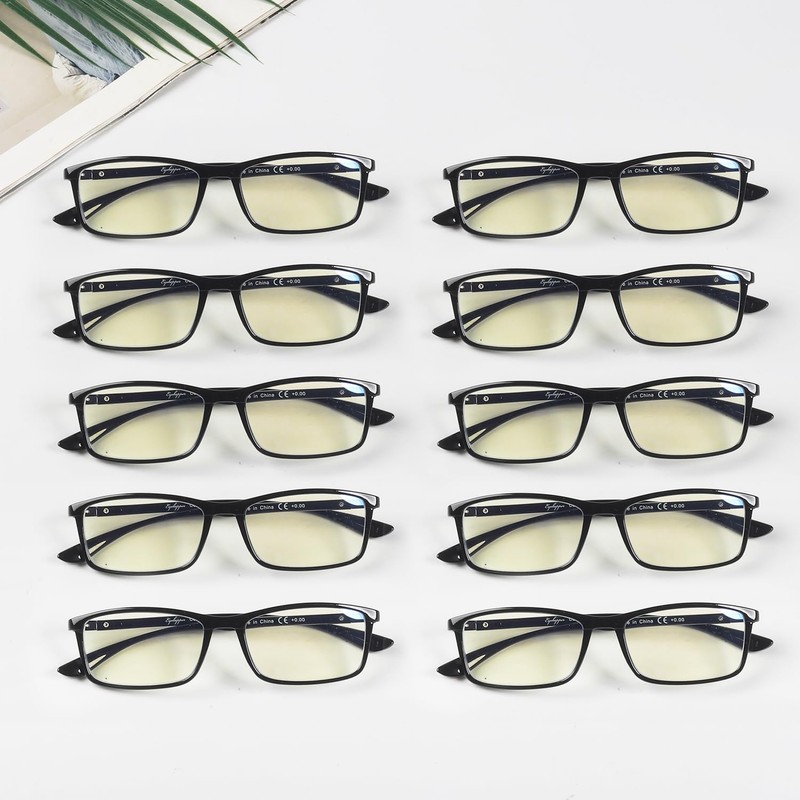 - 【10 PACK】With 10 pairs of computer magnifying eyeglasses in black frame, you can put readers wherever you need them. This is the perfect time to buy blue light blocking reading glasses.