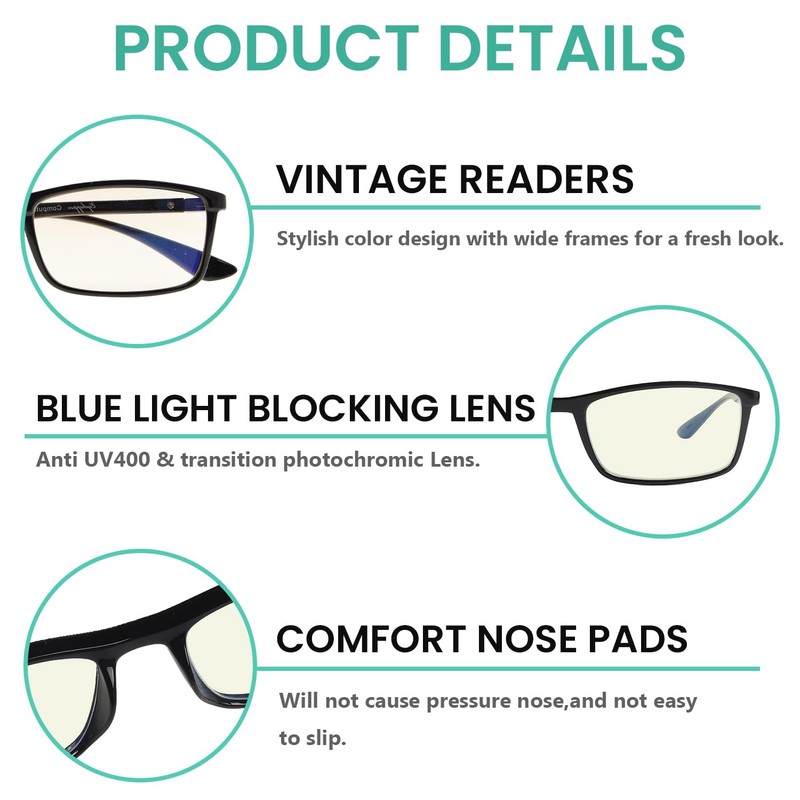 In addition to practicality, we also focus on the stylishness of our magnifying eyeglasses. Very cool color combination and classic frame shape is suitable for most people. Whether you wear readers with casual or formal wear, they will show off your taste and personality.