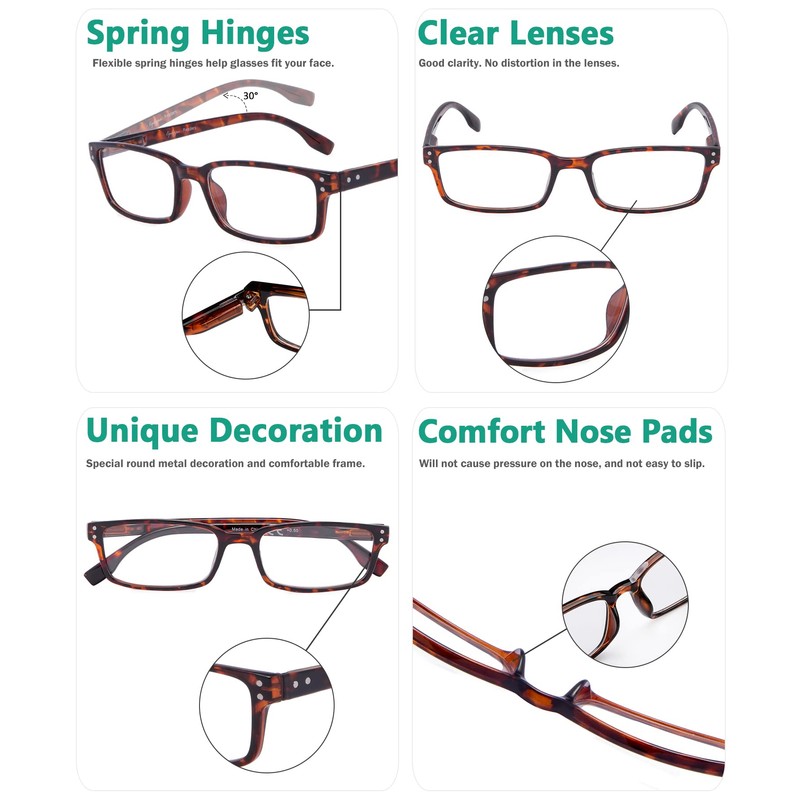 Each reading glasses are designed with spring hinges, providing enhanced flexibility and durability.