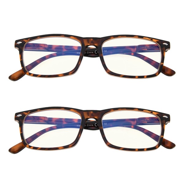Eyekepper 2 Pack Computer Reading Glasses Blue Light Blocking Readers for Men Women, Tortoiseshell