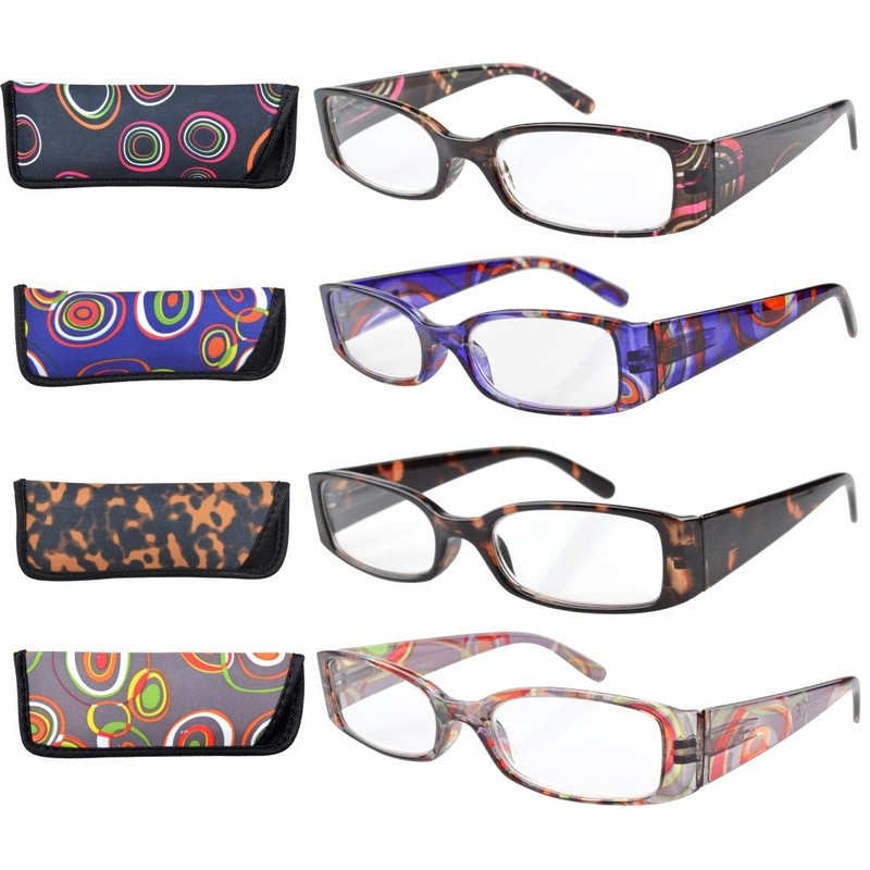 Eyekepper 4-Pack Beautiful Colors Spring Hinge Rectangular Reading Glasses +1.00