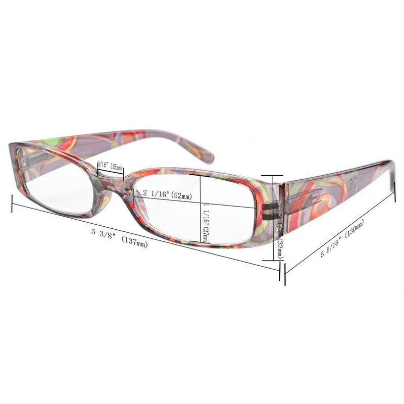 - PRODUCTS DIMENSION-Frame material: plastic,Lens width: 2 1/16" (52mm),Frame width: 5 3/8" (137mm),Lens height: 1 1/16" (27mm),Frame height: 1 1/4" (32mm),Bridge (DBL):9/16" (15mm),Temple length: 5 5/16" (130mm),Spring hinge: Yes,Lenses: Aspheric,Head size: Narrow to Medium.-able frame