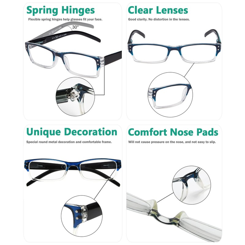 - ▲ 4 PACK READERS FOR WOMEN AND MEN - You can keep a pair in the bedroom, a pair in the living room, a pair in the office, and a pair in your purse. You don't need to run around looking for glasses when you want to read.