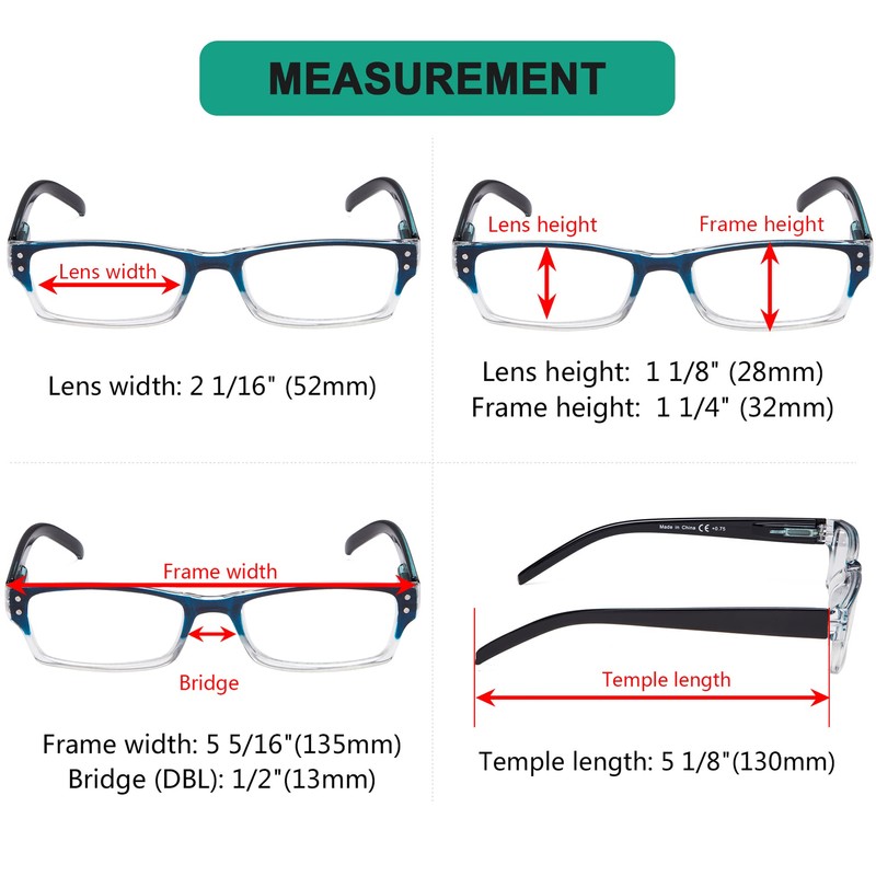 - ▲ FRAME HEIGHT - Reading glasses for women and men with spring hinges. Frame height about 1.26 inches (32mm).