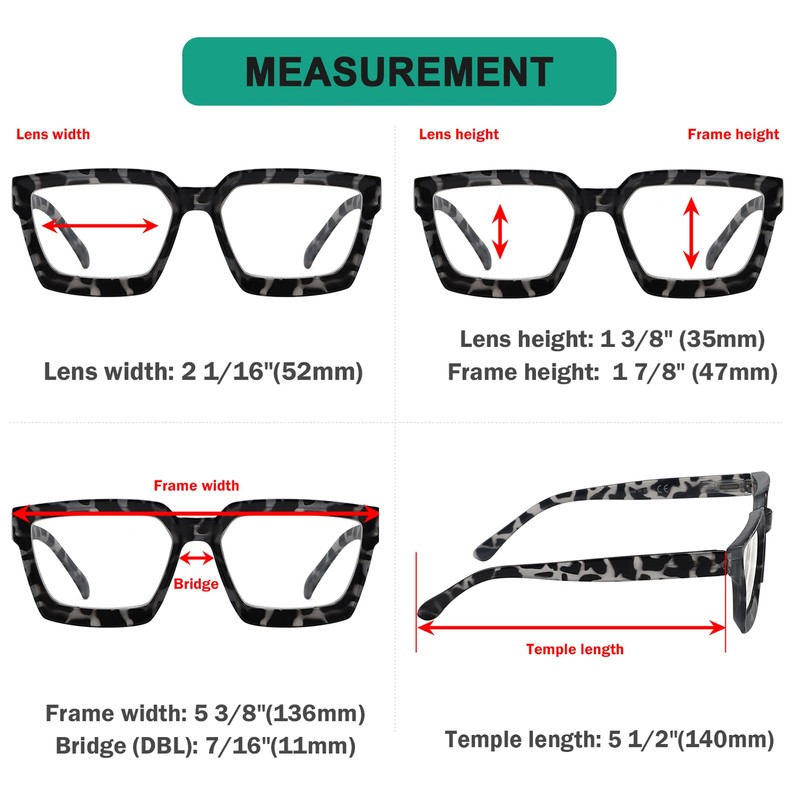 - ▲ Square reading glasses with spring hinges. Frame height about 2.06 inches (52mm).