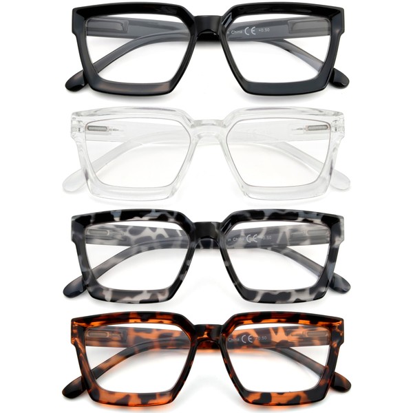 Eyekepper 4 Pack Reading Glasses Women Oversize Frame Ladies Readers +2.00