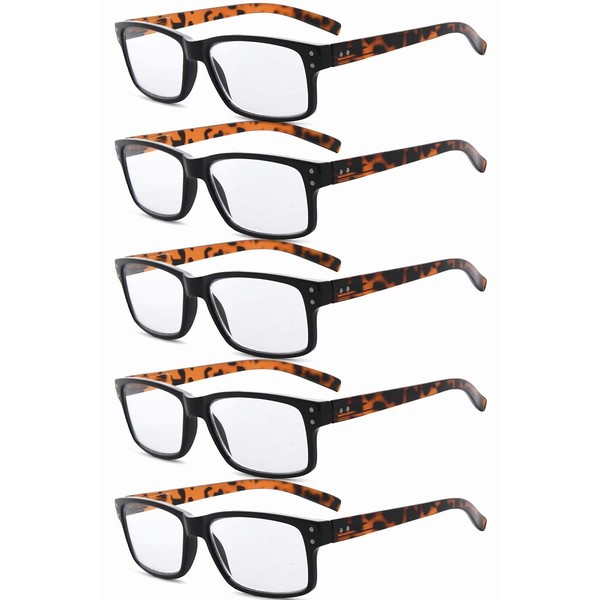 Eyekepper 5 Pack Reading Glasses for Men Spring Hinges Classic Readers Black Frame with Tortoie Arms +3.25