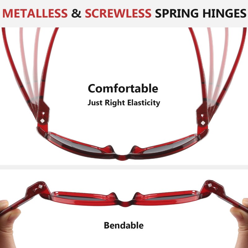 • 【COMFORTABLE】Spring hinges without screws provide "just right elasticity" when the temples open outwards to both sides. The temples of bifocal reading eyeglasses open and close smoothly with less pressure on the face.